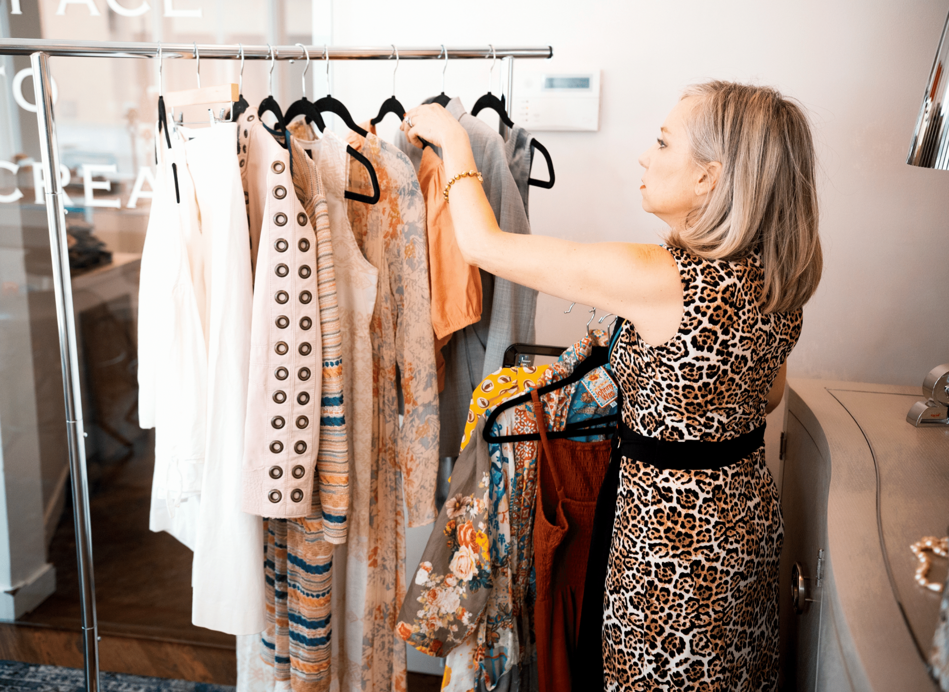 Together, we sort through and evaluate your closet, removing items that are not worn, not fitting, or flatter your body shape now. We want to ensure that your entire wardrobe enhances your individual brand inside and out.